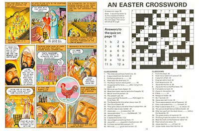 The next image shows the opening page of the picture-strip story. There are sixteen pages of picture-strip and twelve pages of text combined with illustrations, puzzles and pictures to color.